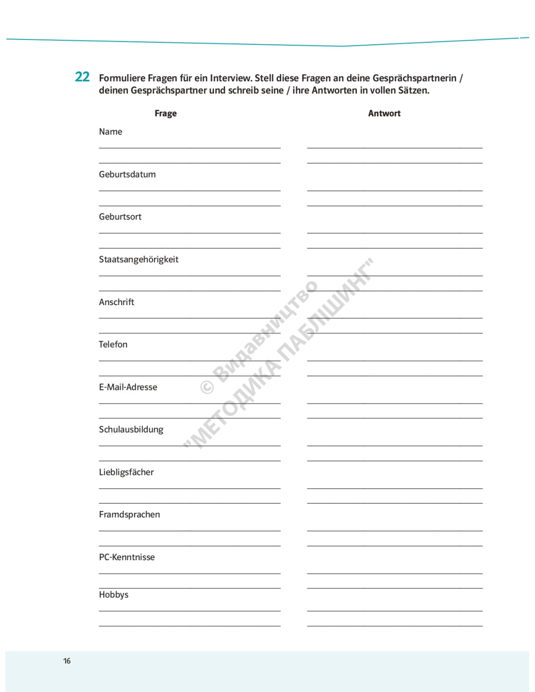 - контроль навчальних цінностей після кожних двох модулів ("Ich kann...");